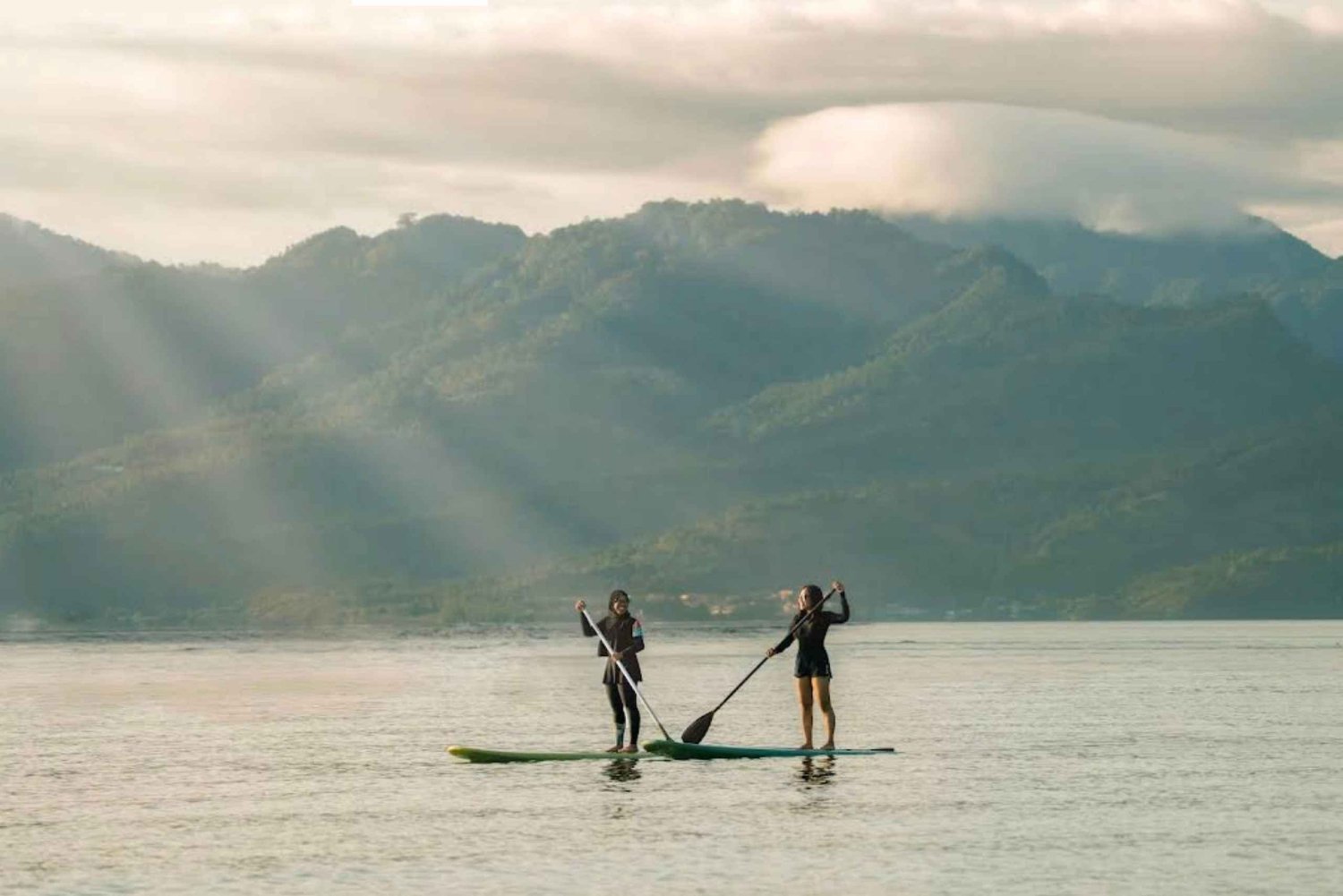 Oplev magien på Gili Trawangan, når den er mest fredfyldt – lige før verden vågner. Glid hen over det rolige turkisblå vand, mens de første gyldne stråler stiger op bag Mount Rinjani og maler himlen i bløde nuancer af lyserødt, orange og guld. Uanset om du er helt nybegynder eller erfaren padler, byder dette fredfyldte eventyr på en perfekt blanding af ro, skønhed og en smule spænding. Inden du starter, får du en gratis introduktionslektion i, hvordan du bruger paddleboardet sikkert og komfortabelt. En af de venlige instruktører vil også ledsage dig på vandet i de første 15 minutter for at sikre, at du føler dig tryg og afslappet, inden du fortsætter på egen hånd. Hele oplevelsen varer op til 120 minutter, så du har masser af tid til at udforske kysten, nyde udsigten og virkelig nyde morgens ro på havet. Vandet ved solopgang er typisk roligt og spejlblankt – ideelt til balance, refleksion og til at nyde den betagende natur. For at gøre øjeblikket endnu mere uforglemmeligt får du et gratis dronefoto af solopgangssessionen, der perfekt fanger dit solopgangs eventyr fra oven – et smukt minde at tage med hjem fra din tid i paradis. Dette er mere end bare paddleboarding – det er din plads på første parket til et af naturens smukkeste skuespil.Includes