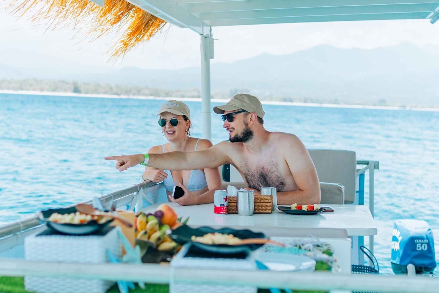 Discover Gili's Best Island Cruise: Dive into underwater statues, Explore sea turtle points, and Gili Air's with beautiful coral, and tropical fish as you swim in the crystal-clear waters. Dive beneath the crystal-clear waters and be mesmerized by the captivating underwater statues on the ocean floor. Next, adventure to Turtle Point, where you can witness these gentle creatures in their natural habitat. It's a truly magical sight that will leave you feeling connected to the wonders of nature. Continue your island-hopping journey to Gili Air for more snorkeling among the colorful coral reefs and tropical fish. After an Afternoon of swimming and snorkeling, you'll have an opportunity to unwind aboard our custom made pontoon as you indulge on a delicious light BBQ dinner and watch the sun sink beneath the horizon. Book your Gili Islands getaway today and create memories that will last a lifetime. Paradise awaits, ready to unveil its extraordinary wonders just for you.Includes