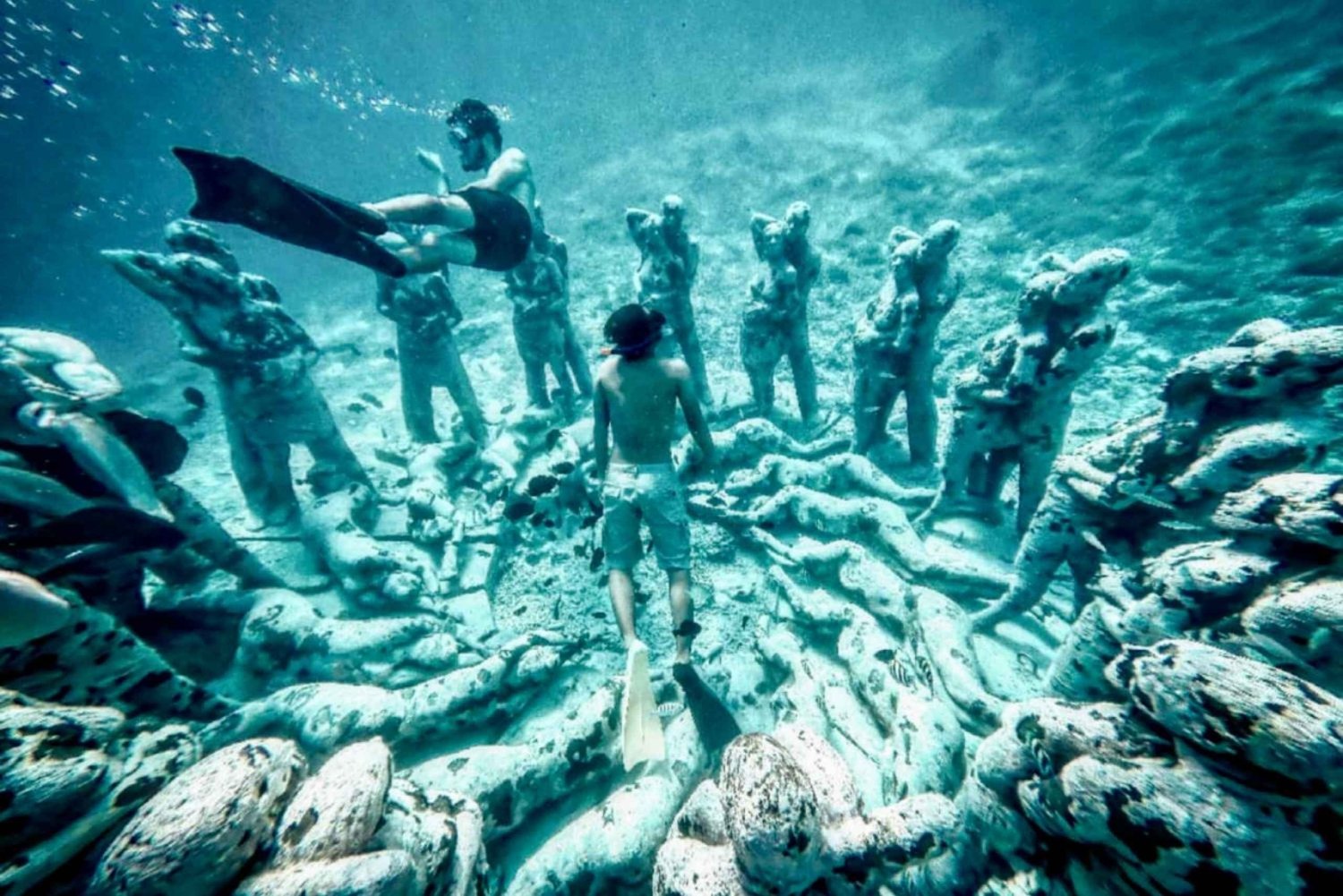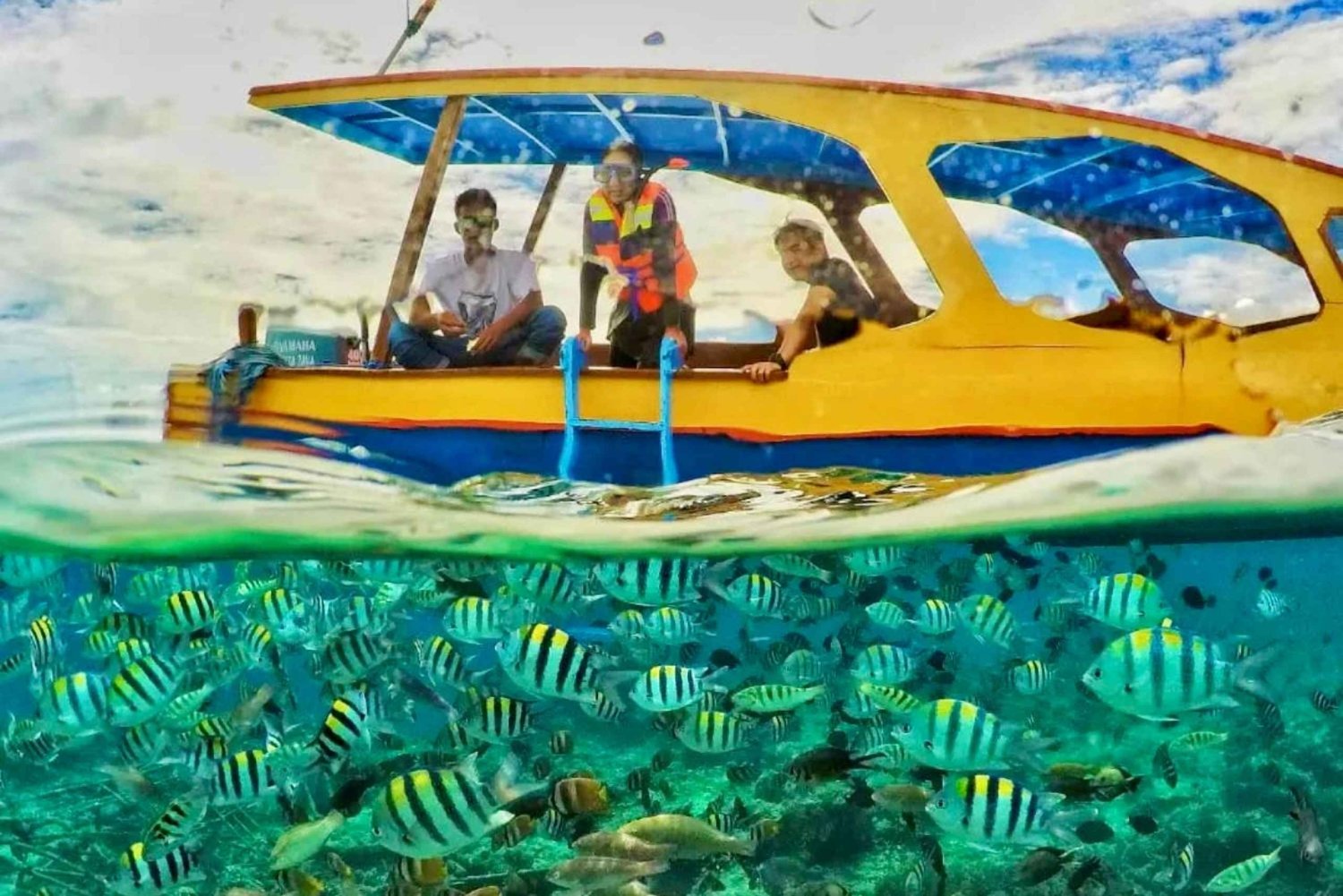 Transport selon l'itinéraire (voiture + chauffeur + carburant) Bateau à fond de verre privé Équipement de plongée (masque + tuba + gilet de sauvetage) Billets d'entrée et dons touristiques Frais de stationnement Guide touristique et guide de plongée Bouteilles d'eau potableEasy cancellation