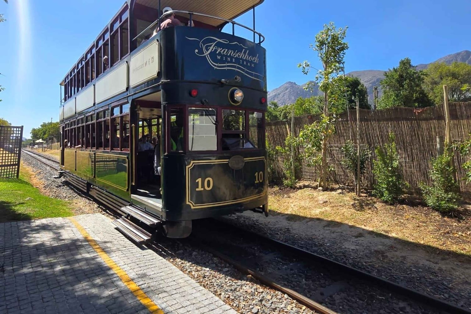 Begin je dag met een ophaalservice bij je accommodatie in Kaapstad. Ontspan en geniet van een mooie rit door de Kaapse wijnlanden naar je eerste halte, Zevenwacht Wine Estate. Bij aankomst ga je naar het proefcentrum, omringd door een vatenkelder en wijngaarden. Leer over de rijke geschiedenis en wijnbouwtradities van het landgoed terwijl je 4 wijnen proeft in combinatie met kaas. Ga vervolgens naar Lanzerac Wine Estate in Stellenbosch. Geniet van een heerlijke zintuiglijke ervaring, waarbij 5 wijnen uit hun Jonkershoek-assortiment worden gecombineerd met ambachtelijke chocolade. Wandel door de prachtige tuinen van het landgoed en maak foto's. Ga verder naar Franschhoek, een van de oudste steden van Zuid-Afrika. Bewonder de eeuwenoude wijngaarden, prachtig bewaard gebleven Kaapse Nederlandse architectuur en adembenemende landschappen. Tot slot kom je aan bij de terminal van de Franschhoek wijntram. Stap op de wijntram naar Rickety Bridge, het eerste wijndomein van Franschhoek dat in handen is van vrouwen. Bij aankomst geniet je van een charmante rit met de tractor van de tramhalte naar de proefruimte, omringd door weelderige wijngaarden en een spectaculair uitzicht op de bergen. Keer terug naar je accommodatie met onvergetelijke herinneringen aan een dag vol verkenning van enkele van de meest iconische wijngaarden van de Kaap.Includes