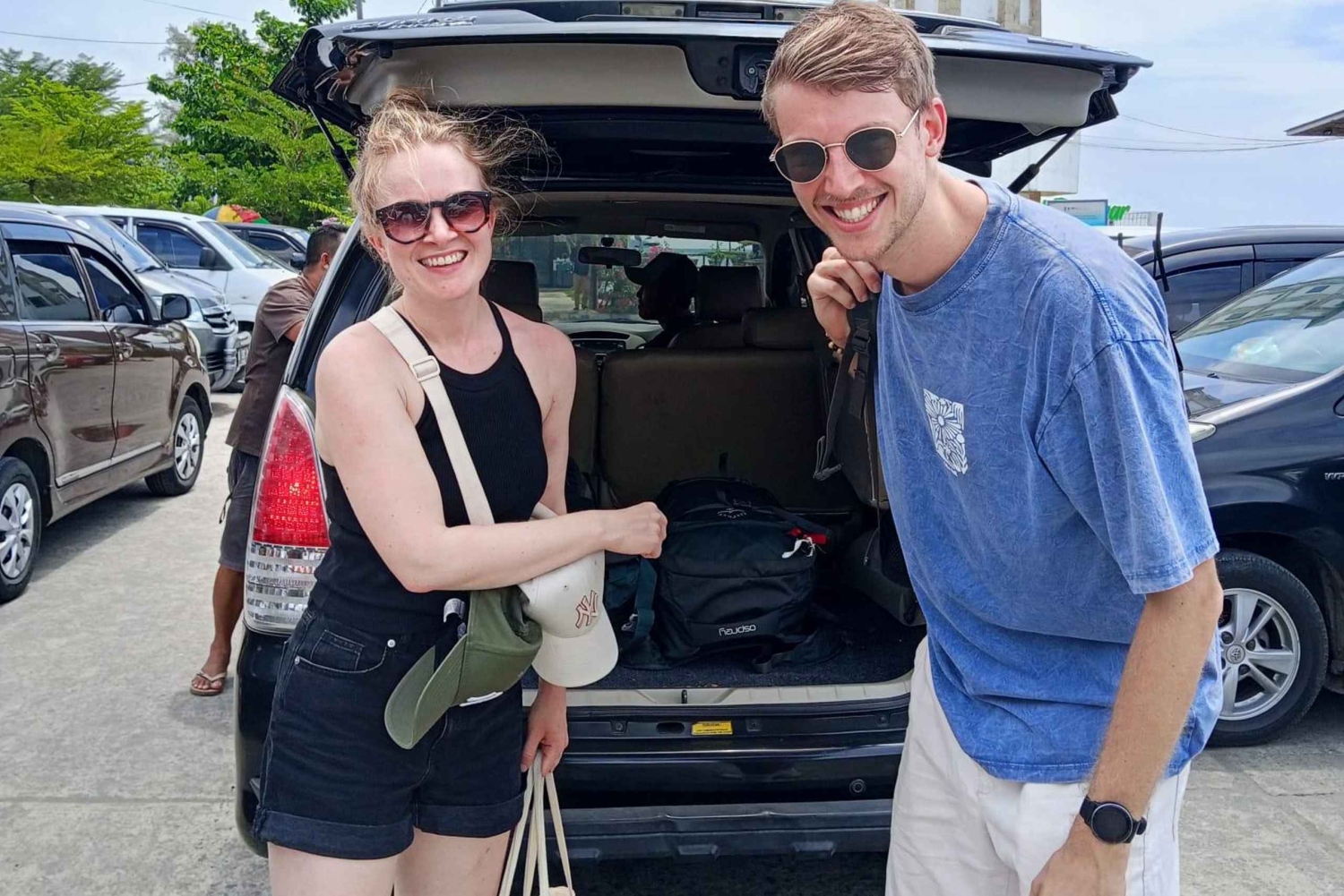 Nie zadowalaj się zwykłym transferem – zacznij wakacje na Lomboku od niezapomnianego przeżycia! Ta prywatna usługa łączy w sobie wygodę bezpośredniego transportu z ciekawymi lokalnymi akcentami, dzięki czemu Twoja podróż z portu Bangsal do Senggigi Central stanie się wspaniałym powitaniem na wyspie. Atrakcja: po spotkaniu z przyjaznym, profesjonalnym kierowcą/przewodnikiem, ruszysz w drogę komfortowym, klimatyzowanym pojazdem. Podczas jazdy zapierającą dech w piersiach nadmorską drogą Twój przewodnik przedstawi krótki, interesujący komentarz na temat kultury Sasaków, lokalnego życia i kluczowych punktów zainteresowania, które mijacie. Okazja do zrobienia zdjęć: główną atrakcją tego doświadczenia jest obowiązkowy 15-minutowy postój na kultowym wzgórzu Malimbu. Ten wysoki punkt widokowy to jedna z najlepszych okazji do zrobienia zdjęć na wyspie, z widokiem na turkusowe wody i trzy wyspy Gili (Trawangan, Meno i Air). Dzięki temu zaplanowanemu postojowi Twój transport to nie tylko przejazd, ale prawdziwa atrakcja turystyczna.Includes